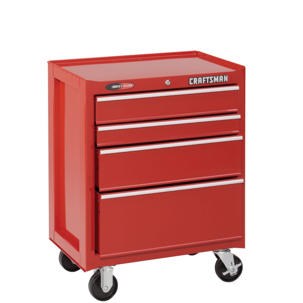 For the longest time, Dan and I have both been wanting one of those fancy, free-standing, rolling Craftsman tool chests. However, neither one of us are willing to cough up $400+ for one, no matter how cool they are. But nevertheless, every time we are in Sears, we pass them by with longing in our eyes (Note: did you know they make a PINK one now??! Whaaaa??). But the more I thought about it, the more I realized they don't really hold that much - nothing big at least. He has the small metal chest he fixed up for his basement man cave for all the little things (nails, screws, small tools, tape, glue, misc.) but he was using an old bookcase to house the drill, nail gun, drill bits, socket set, saws, etc. Stuff that came in big boxes and wouldn't fit in the standard rolling tool chest. I decided to not only remedy this situation, but also finally give us the Craftsman tool chest we've been coveting.